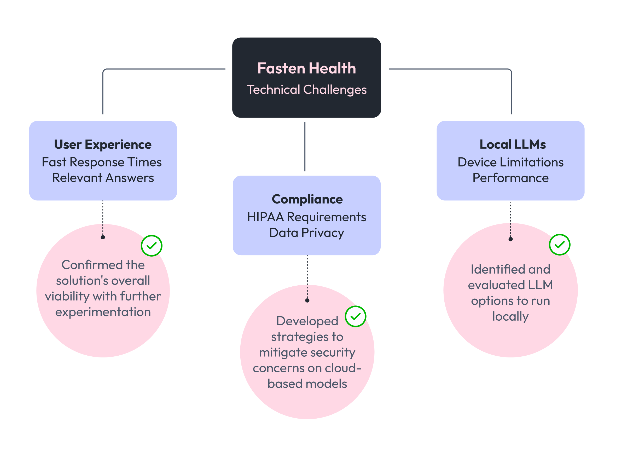 For Fasten Health, our ML engineers conducted technical research and proof of concepts (PoCs) in parallel with our workshops to determine the feasibility of the AI-driven solution. Our team faced three main challenges: