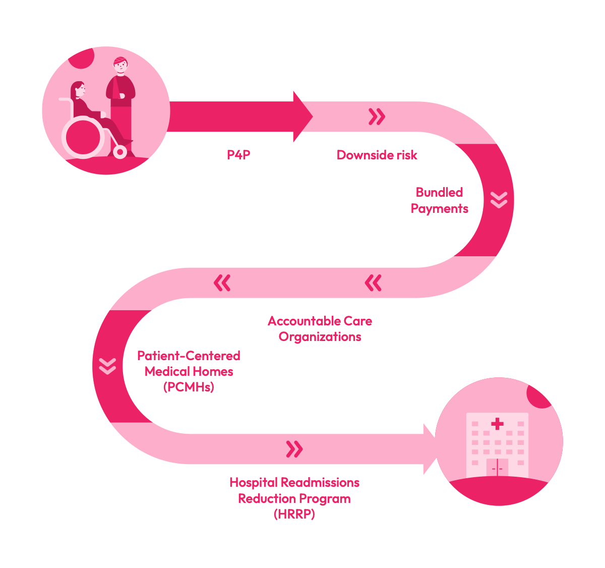 But how is this shift happening? Is there only one road to adopt VBC practices? Is it an all-or-nothing type of approach? Well, no. The level of adoption and risk providers are prepared to take on will depend on the VBC model they choose.
