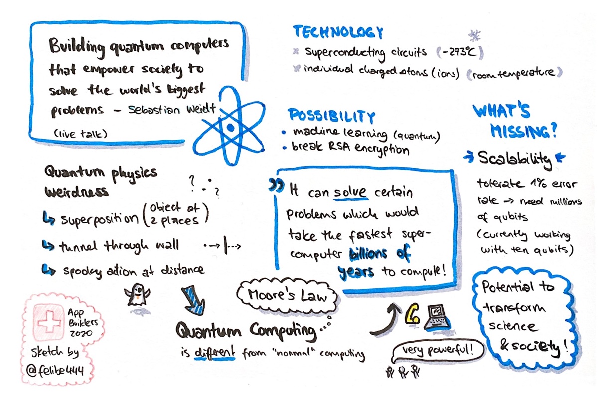 A really mind-blowing talk about the state of quantum computers by Sebastian Weidt where he explained the benefits of going quantum and the difficulties it brings and how they are constantly working on better quantum chips. But what is that to us devs? Well, he tells us we don't need a fancy Ph.D. in order to work with quantum algorithms, as time goes by more and more frameworks are being created by different companies in order to run very powerful quantum algorithms. A very good analogy would be the case of machine learning. The bar will keep lowering year by year and as long as people get the quantum way of thinking they will be able to use these powerful tools to process information at speeds impossible by any supercomputer!