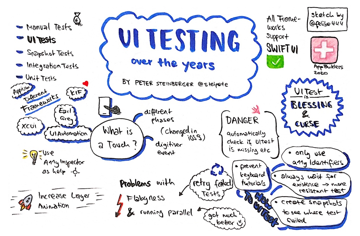 In the conference keynote, Peter Steinberger shared what he learned in 5 years of testing at PSPDFKit. He showed us the entire evolution regarding UITesting state of the art until recent Xcode release including XCUItesting and UI testing parallelism. He also talked about some community libraries and Apple internals! For instance, how UITesting libraries "simulates" a touch or how to implement busy waiting through app runloop.