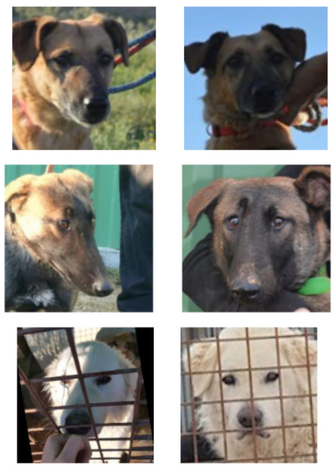 These false negative examples show that the model isn’t robust enough to detect a match from photos taken with different angles, the same goes for lighting conditions. Some other conditions make recognition even more difficult (such as the dog sticking its tongue or being behind a fence).