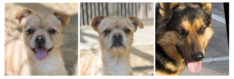 Example of a triplet, from left to right: Anchor sample, positive sample, and negative sample.