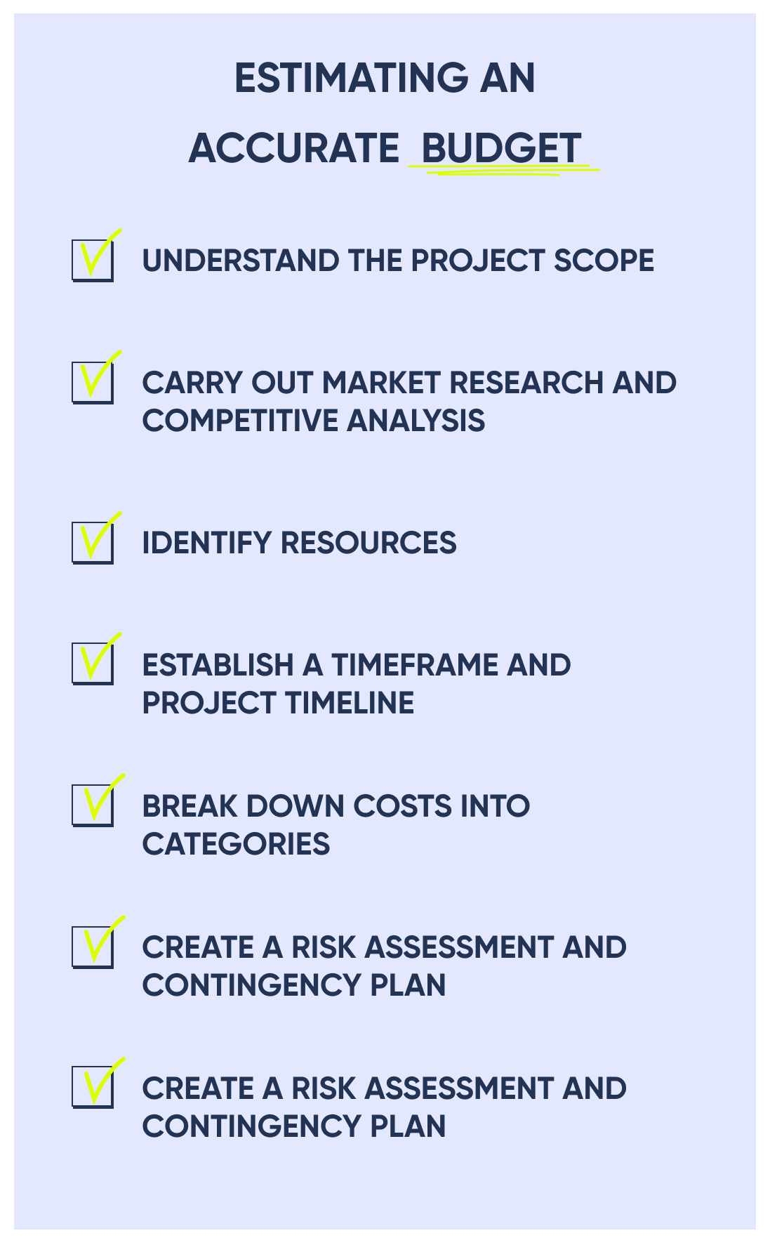 Identify potential risks and uncertainties that could affect your project's budget. Allocate a contingency budget to handle unforeseen issues. Develop mitigation strategies to minimize risks as much as possible.