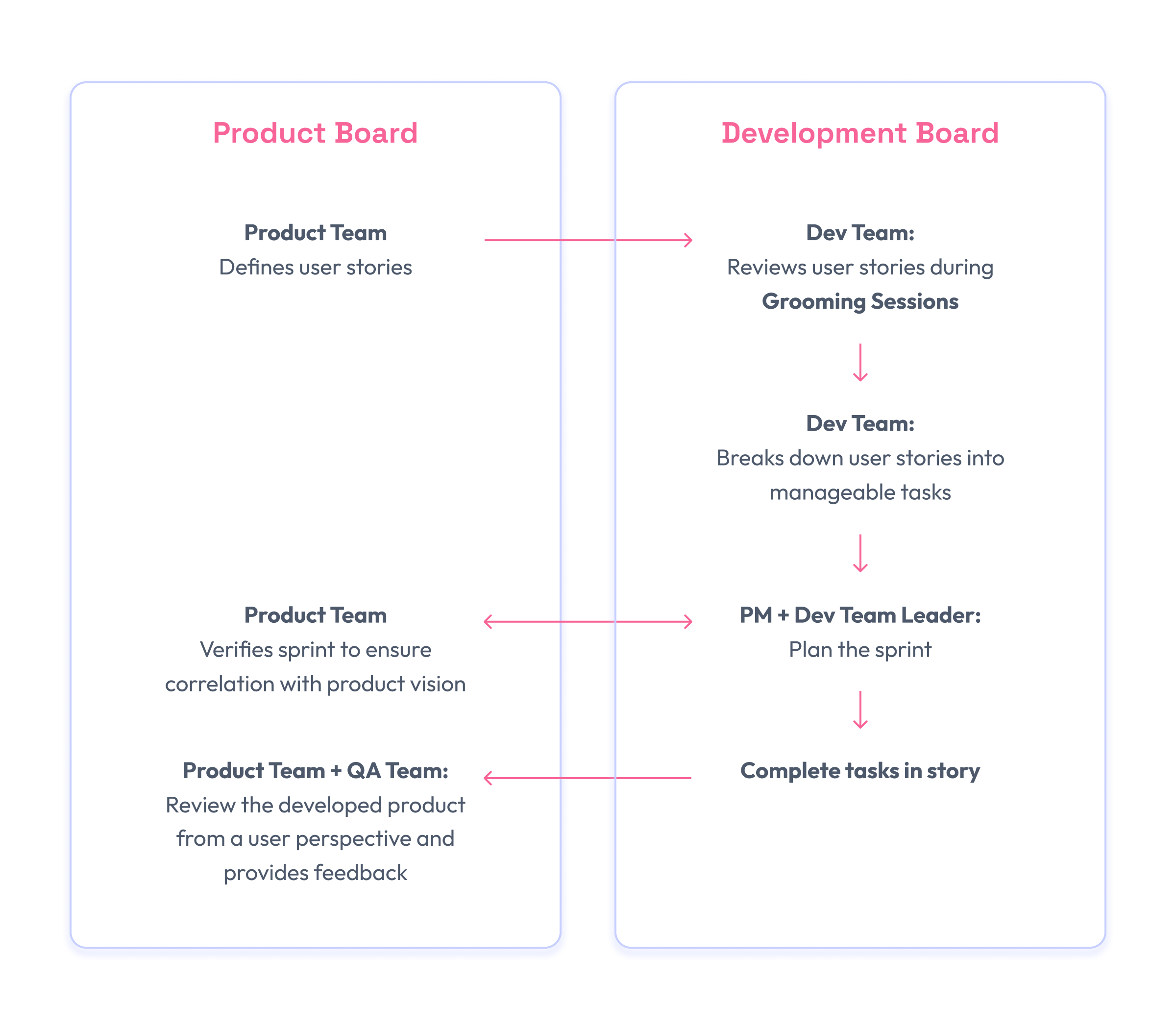 The flow between these two boards is essential for smooth collaboration between the product and development teams:
