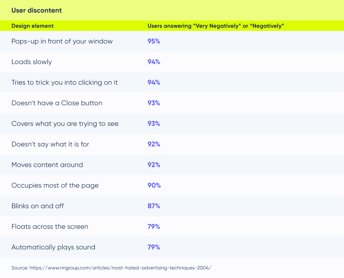 The Nielsen Norman Group study of 2017 determines which advertising techniques are most disruptive and detrimental to the modern user experience. Here are the results: