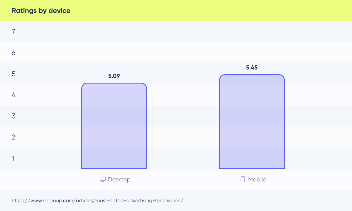 In this chart, we can see the user’s rating when asked about liking/disliking advertisements specifically on two devices: desktop and mobile.