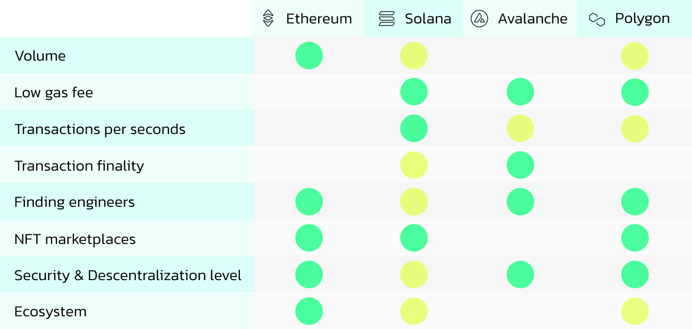There are also many other thrilling ecosystems I haven’t listed here but deserve attention nonetheless (such as Tron, Algorand, flow). I’d advise you to take a look at them as some might be a good fit for your needs.